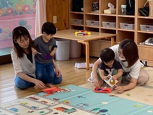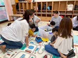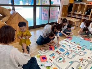 いつもながら朝の玩具遊びの時間は穏やかなお話の時間♪ 初めてのお友だちも笑顔いっぱいのスタート!