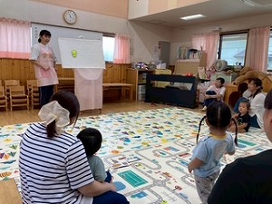 本日は1~2歳さんを対象とした「親子で触れあいリトミックを行いました。