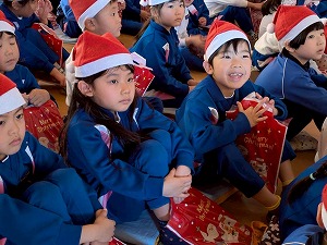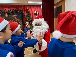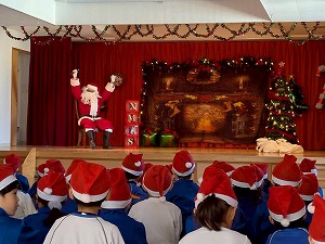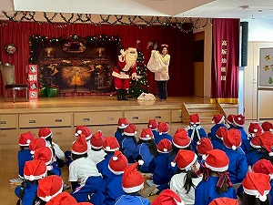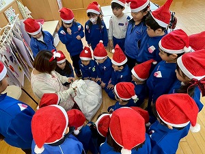 クラスで考えた質問をしたり、サンタさんと一緒に写真を撮ったり、プレゼントをもらったりと笑顔溢れる楽しい時間となりました。