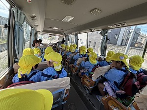 川越市にある「あらはた園」さんに向かうバスの中では、「おいもたくさん取るぞ!」「おいもと綱引きだー!」と意気込み、ワクワクの気持ちが溢れていました。