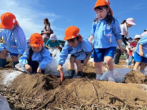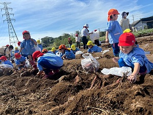 本日は年中さんが良いお天気の中、おいもほりに行ってきました!