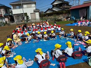 頑張った子どもたちはお腹がぺこぺこ!気持ち良い青空の下、みんなで楽しくお弁当を食べ、思い出に残る1日になったことと思います。