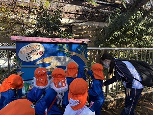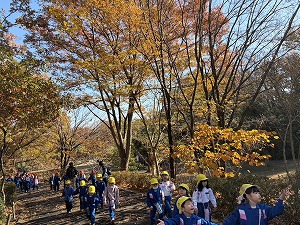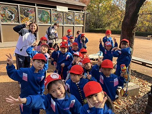 秋晴れの良いお天気の中、コアラやカンガルー、ナマケモノ、ワライカワセミ、カピバラ、キリン等たくさんの動物を見ることができました。「コアラさん寝てるから静かに見よう!」「カンガルーさんのジャンプすごいね!」と動物をじっくり見ながら、お友だちとのお話も盛り上がっていました。紅葉された木々に囲まれながら、お散歩も楽しみ葉っぱが落ちてくると「葉っぱのシャワーだ!」と大喜び!お昼のお弁当もみんなで食べ、お菓子を見せ合ったりと楽しい秋の遠足になりました!