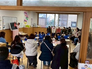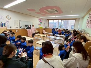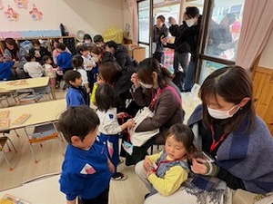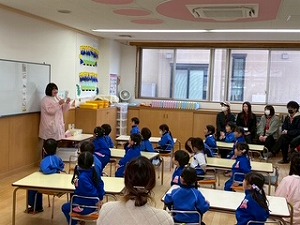 2026.02.17 3歳児 年少 保育参観 本日は年少さんの保育参観を行いました。 数日前から「お家の人にかっこいいところを見てもらいたい!」「お歌の発表頑張る!」と今日を楽しみに張り切っていた子どもたち。おはじまりではお返事やめばえカルタでも成長が見られ、ペンダントの制作ではお家の人のために一生懸命作る姿がありました。お家の人にプレゼントする様子はとても可愛らしかったです。 合唱合奏でもクラスのお友だちと気持ちを合わせ、素敵な発表となりました。 今回で年少最後の保育参観となりました。お忙しい中お越しくださいましてありがとうございました。 « 古い記事 一覧へ