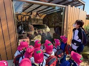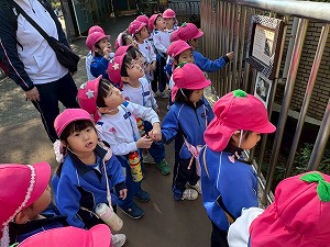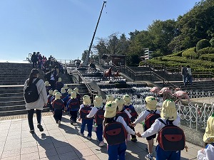 2025.11.01 3歳児 年少 園外保育♪ 本日は年少さんが、こども動物自然公園に遠足に行ってきました! 前日から「明日は遠足♪」と心待ちにしていた子どもたち。当日も「どんな動物がいるかなー!」と笑顔を輝かせていました。 過ごしやすい秋晴れのお天気の中、沢山歩きながらコアラ、カンガルー、クォッカ、ナマケモノ、カメ、キリン、カピバラ等沢山の動物を見ることができ、大興奮の子どもたちでした。坂道もまだまだパワーいっぱいで元気にお散歩ができました♪お昼のお弁当も「美味しいね」とお話を楽しみながら食べたり、持ってきたお菓子の見せ合いっこをしたりと楽しい一日を過ごすことができました。 « 古い記事 一覧へ