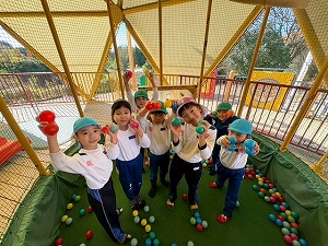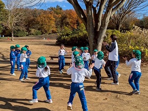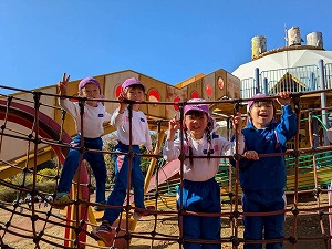 良いお天気に恵まれ、朝から「早く行きたい!」と楽しみにしていた子どもたち。むさしキッズドームに到着すると、長いローラー滑り台やボールプールで大はしゃぎ!お友だちと誘い合いながらいろいろな場所を探検し、笑顔がはじけていました。いっぱい遊んだ後は広い芝生にシートを敷き、お友だちとお弁当タイム♪ お菓子を見せ合ったり会話を楽しみながら食べることができました。広い芝生の上をみんなで走り回ったり、どんぐりや落ち葉など小さな秋も見つけ、時間ぎりぎりまでたっぷり遊んだ年長さん。帰りのバスではまどろむ様子も見られました。とても楽しい秋の遠足になったと思います!
