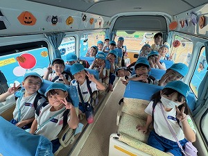 昨日からずっと楽しみにしていた子どもたち。バスの中ではどんなおいも料理にしてもらうかを考えながら、ワクワクドキドキ!