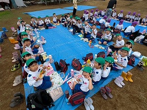 その後も雨は降らず、みんなで外でお弁当を食べてお散歩をすることもできました。お散歩ではどんぐりやきのこ等たくさんの秋を見つけることができ、大満足の子どもたちでした!