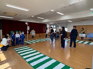 昨日は警察官の方に来ていただき、年長さんが交通安全教室を行いました。