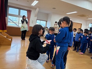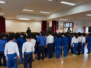 その後は感謝の気持ちを込めて言葉と歌のプレゼントを贈り、石島先生からもお話をいただきました。小学校への期待も膨らんだ様子の子どもたちでした。
