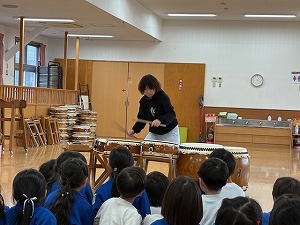 お礼として石島先生が太鼓の演奏をしてくださり、その迫力に歓声が上がるほどでした。