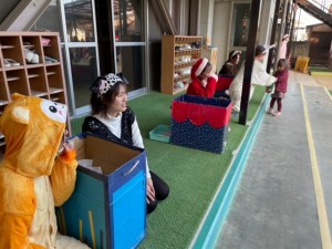 2023.12.22 未就園児 未就園児クリスマス会 本日は未就園児クリスマス会を行いました。 ワクワクした気持ちでホールに集まってくれたお友だち。舞台の上にサンタちゃんや動物さんが登場するとにこにこなお顔を見せてくれましたね。サンタさんがプレゼントを持って来ると「わあ!サンタさんだ!」と嬉しそうな声も聞こえてきました。 サンサン体操も元気いっぱい踊る姿が可愛らしかったです。 最後には、動物さんたちからプレゼントをもらい笑顔が溢れる素敵な時間となりました。 お忙しい中ご参加くださいましてありがとうございました。 « 古い記事 一覧へ 新しい記事 »