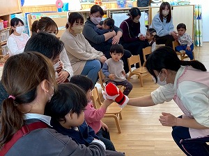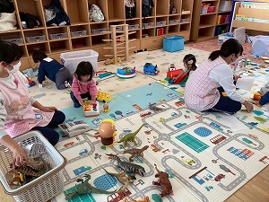 お父様お母様が夢中で飾り付けをしてくださっている間、お友だちは先生やお友だちと仲良く玩具で遊んでいましたね!一緒に遊んでくれて先生もとっても楽しかったです。