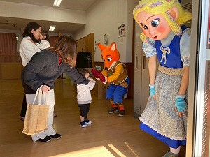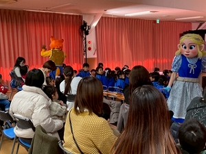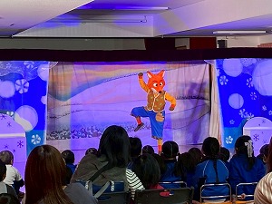 演目は「てぶくろをかいに」。昨日雪が降り、手袋をつけて雪遊びを楽しんだお友だちもいた様子…。季節に合った楽しい演目でした。