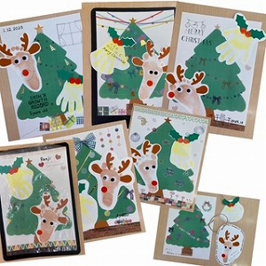 お友だちの手形は‘’クリスマスベル‘’に…。足形は‘’トナカイ‘’に…。その可愛いオーナメントをツリーに飾るお母様…。熱中されていましたね。