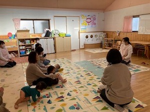 お名前を呼ぶとニコッと可愛い笑顔のお返事をしてくたお友だち。アンパンマン体操もお母様と元気いっぱい身体を動かしてくれました。