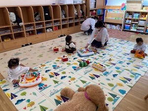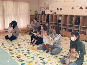 お名前を呼ぶとニコッと可愛い笑顔のお返事をしてくたお友だち。アンパンマン体操もお母様と元気いっぱい身体を動かしてくれました。