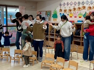 アンパンマン体操ではお友だちは勿論、お父さんやお母さんも一緒に身体を動かし、笑顔いっぱいでした。