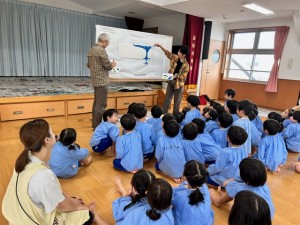 2024.10.07 4歳児 造形レッスン(りんご組・もも組) 本日は、りんご組さんともも組さんが造形レッスンを行いました。 子どもたちは初めての造形レッスンをとても楽しみにしており、しお先生ともも先生のお話を集中して聞く姿が見られました。 導入では長い紙に興味を持ち、「○○みたい!」「はやく描きたいな」とニコニコの子どもたち。 はじめは大きな紙に緊張していた子も、2枚目3枚目も描くほどのびのびと楽しむことができました。 作品は作品展に展示し、その後お持ち帰りいたしますので楽しみにしていてください! お忙しい中お手伝いをいただきましてありがとうございした。 « 古い記事 一覧へ 新しい記事 »