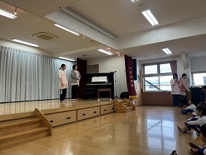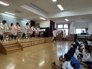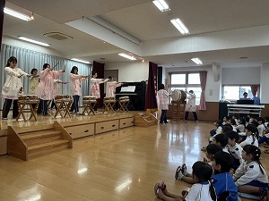 その後のお楽しみ会ではまず先生たちによる太鼓の発表がありました♪