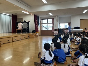 「マツケンサンバⅡ」の曲を、いつもクラスにいる先生たちがかっこよく演奏してくれて大興奮の子どもたち。たくさんの手拍子と歌の応援をしてくれていました!