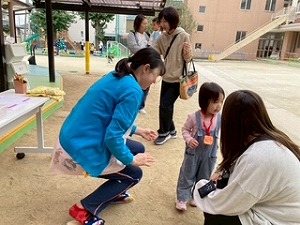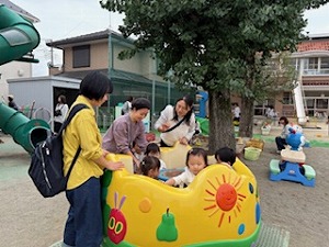 2025.10.14 未就園児 10月 園庭開放 本日は10月の園庭開放日。今日も30人を越す沢山のお友だちが園庭に遊びに来てくれました。 曇り空で過ごしやすい天気の中、お砂場やブランコ、木ら木ら号、はらぺこあおむし号、ボール遊び等など…大好きな遊具や遊びを見つけて笑顔いっぱい遊んでくれたお友だち。本日は途中で園内見学のお散歩にも出かけました。 今月のお土産は‘アンパンマンのメダル’!お友だちの笑顔もお胸のメダルも輝いていましたね! 来週は楽しいハロウィンパーティーもあります♪ ぜひまた遊びに来てくださいね~! « 古い記事 一覧へ