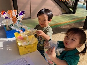 先生もとっても楽しかったです♪今日のお土産は‘’ハロウィンおばけちゃん‘’又‘’はシールと風船セット‘’。「どっちにしようかな~」と選ぶ笑顔もとっても可愛かったです。