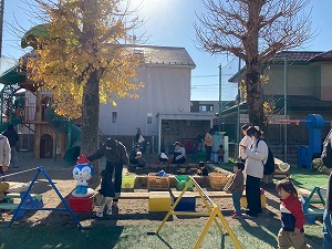 本日は12月の園庭開放日。今日は朝から気温も高くポカポカのお外遊び日よりとなり、今日も沢山のお友だちが高坂幼園園庭に遊びに来てくれました。