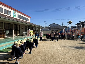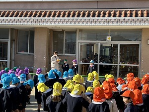 並び方やお話を聞く姿勢がさらに立派になった子どもたち。園長先生から楽しい冬休みを過ごすためのお約束について大切なお話がありました。